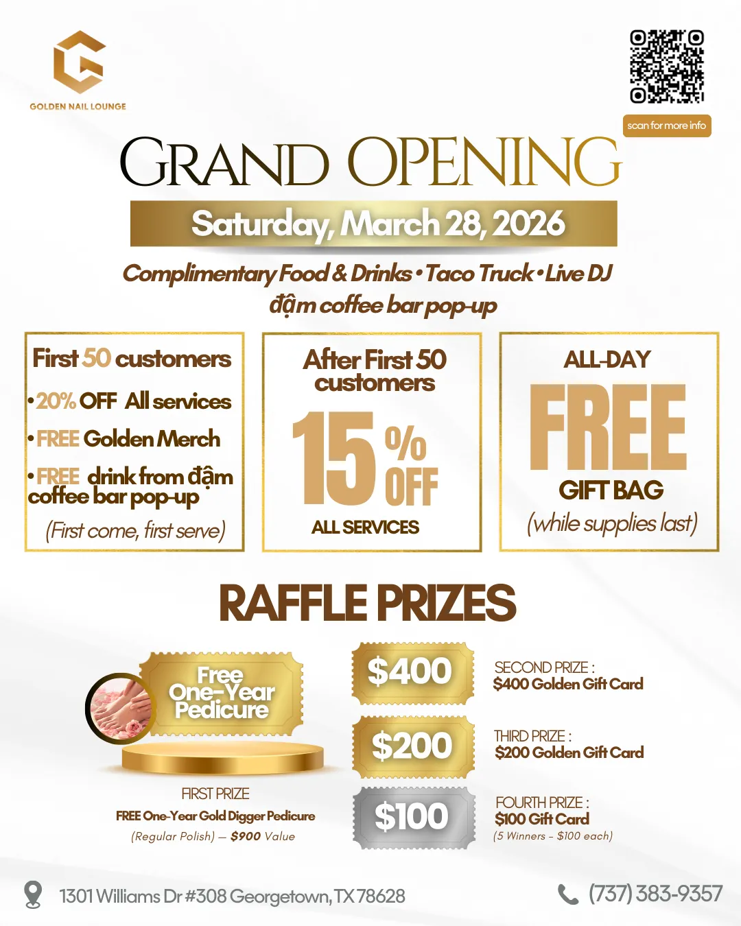 Join us for the Grand Opening of Golden Nail Lounge and celebrate with amazing deals, fun activities, and exciting raffle prizes!