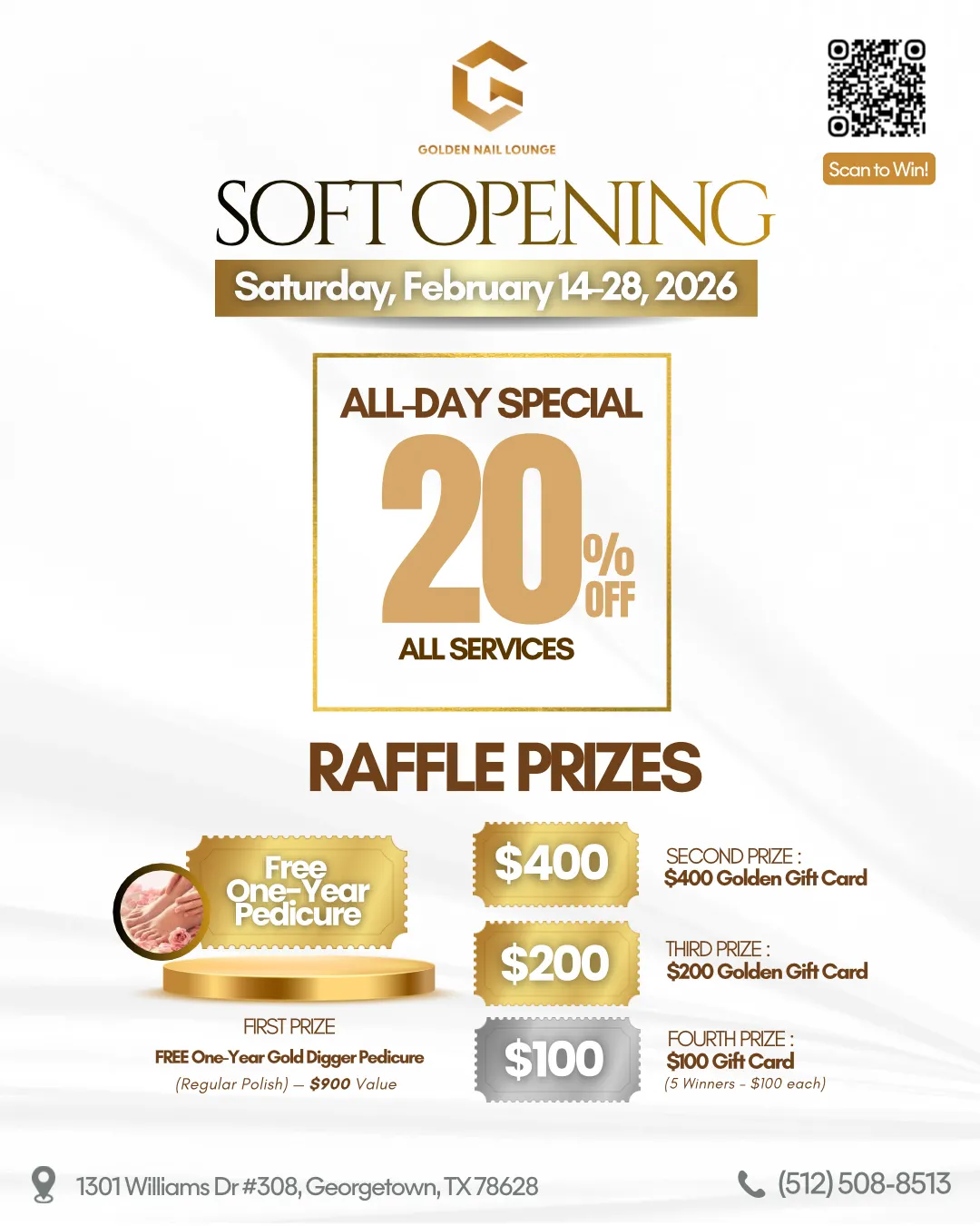 π₯³πGolden Nail Lounge is excited to welcome you to our Soft Opening with a special treat for all our lovely guests!